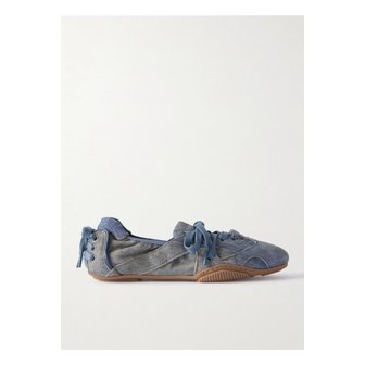 빌라리아 패널 로고 프린트 데님 발레리나 플랫 라이트 블루 1647597343645513
