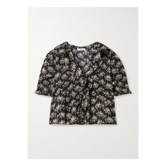 도엔 헨리 러플 핀턱 플로럴 프린트 코튼 보일 탑 멀티컬러 46376663162911312