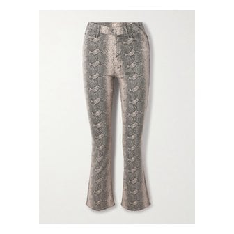 더 허슬러 크롭 스네이크 프린트 하이라이즈 플레어 진 베이지 1647597349715517