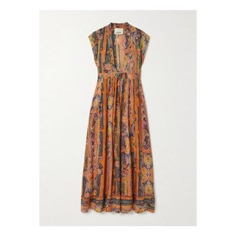 멜리사 벨트 페이즐리 프린트 실크 맥시 드레스 오렌지 1647597357872235