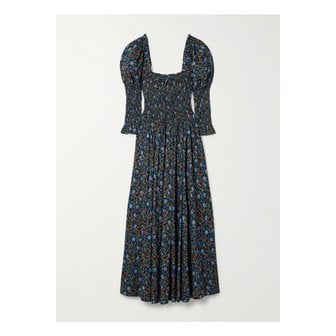 도엔 비쥬 셔링 플로럴 프린트 코튼 보일 미디 드레스 멀티컬러 46376663162909273