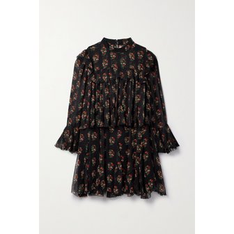도엔 알레트 러플 티어드 플로럴 프린트 실크 조젯 미니 원피스 1647597318506452