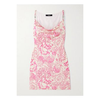 장식 프린트 실크 새틴 미니 드레스 핑크 46376663162890939